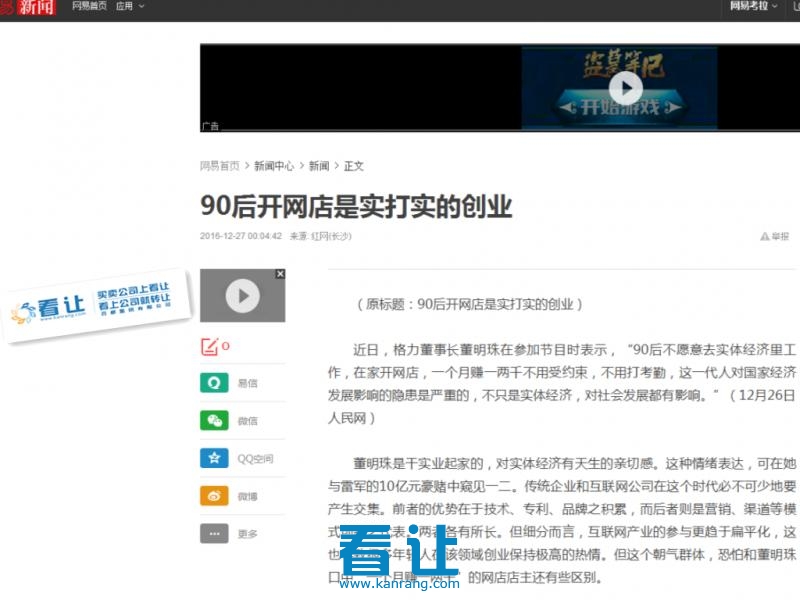 唐县看让 -> 新闻频道 -> 看让动态栏目 -> 唐县看让为90后开网店提供公司转让商标转让——创业更轻松